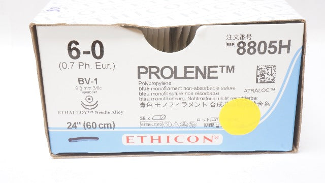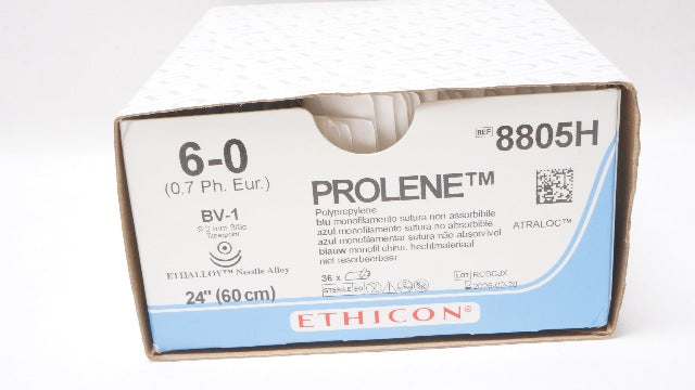 - Ethicon 8805H 6-0 Prolene Polypropylene Stre BV-1 9.3mm 3/8c 24inch-Box of 30