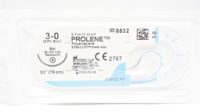 - Ethicon 8832 3-0 PROLENE Polypropylene Stre SH 26mm 1/2c Taperpoint, 30inch