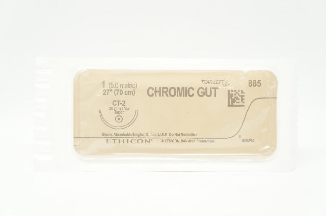 - Ethicon 885 1 CHROMIC GUT, CT-2 26mm 1/2c Taper, 27inch (x)