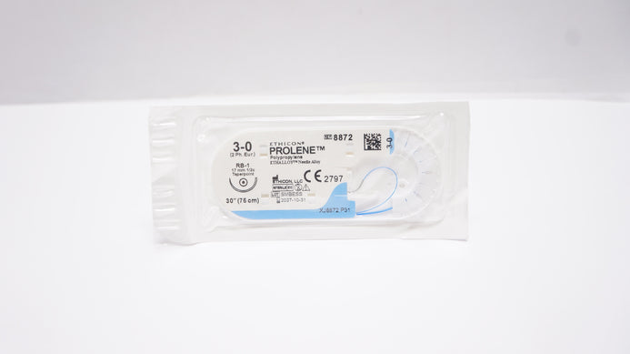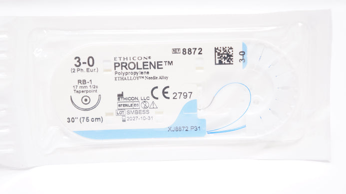 - Ethicon 8872 3-0 Prolene Stre RB-1 17mm 1/2c Taperpoint 30inch