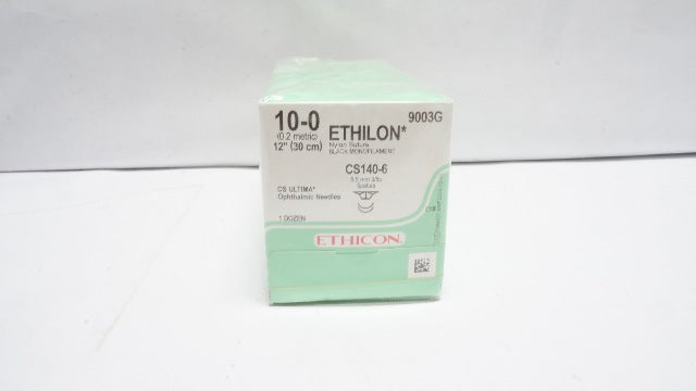 - Ethicon 9003G 10-0 Ethilon Nylon Stre CS140-6 6.5 mm 3/8c 12In (x) - Box of 12
