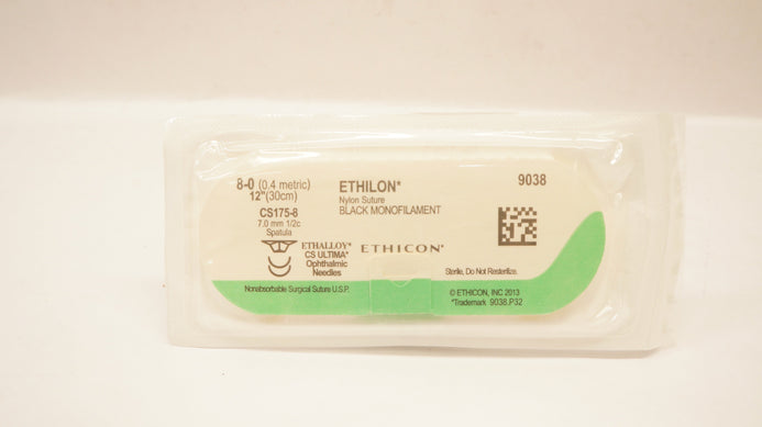 - Ethicon 9038 Ethilon 8-0 Black Monofilament Stre. 12inch CS175-8 7.0mm Spatula