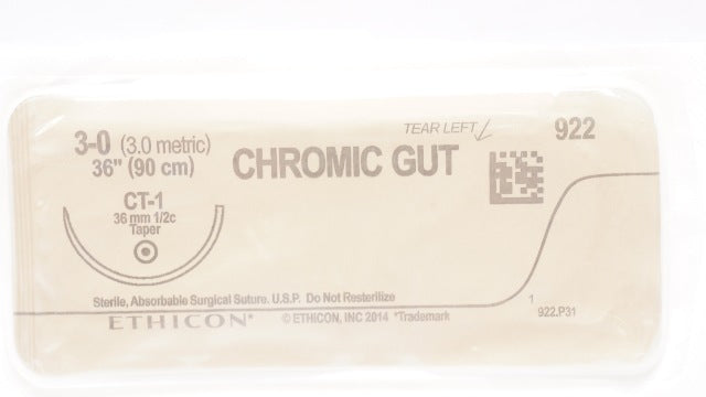Ethicon 922 Chromic Gut Absorbable Stre CT-1 36mm 1/2c Taper 3-0 36inch (x)