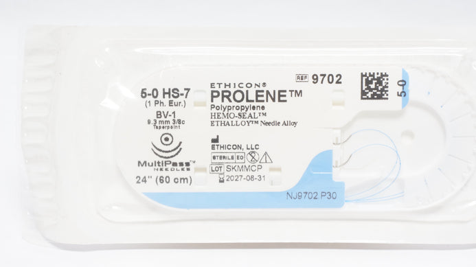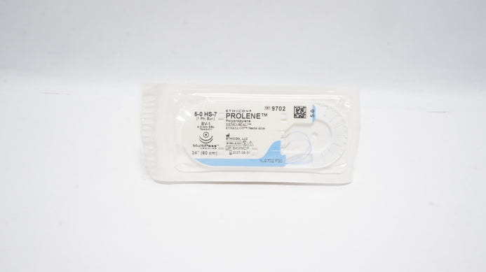 Ethicon 9702 5-0 Prolene Polypropylene Suture Blue Monofilament BV-1 9.3 mm 3/8c Taperpoint, 24inch