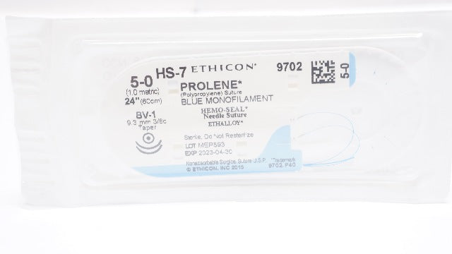 - Ethicon 9702 5-0 PROLENE Polypropylene Stre BV-1 9.3mm 3/8c Taper 24inch (x)