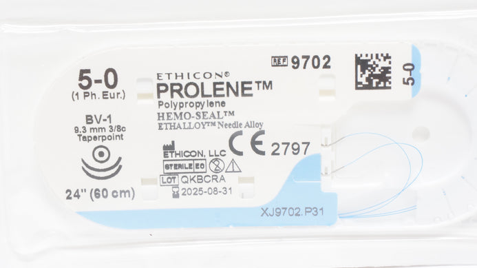 Ethicon 9702 5-0 PROLENE (Polypropylene) Suture Blue Monofilament BV-1 9.3mm 3/8c Taper 24inch