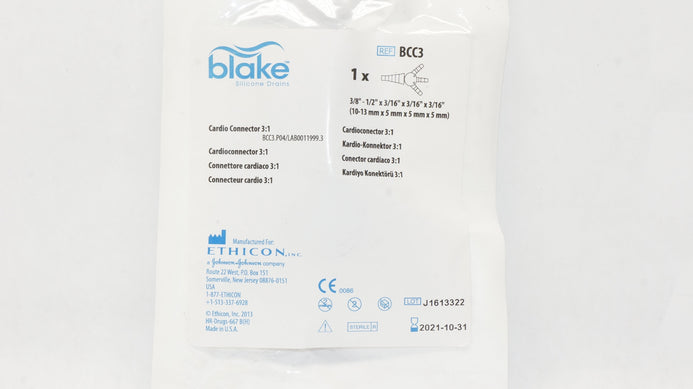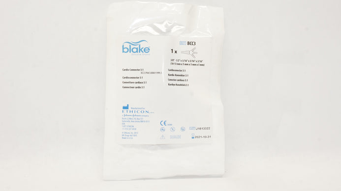 Ethicon BCC3 Blake Cardio Connector 3:1, 3/8 - 1/2 x 3/16 x 3/16 x 3/16in. (x)