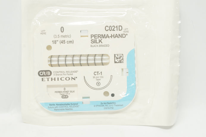 - Ethicon C021D 0 PERMA-HAND SILK CT-1 36mm 1/2c Taper Black Braided 18inch (x)