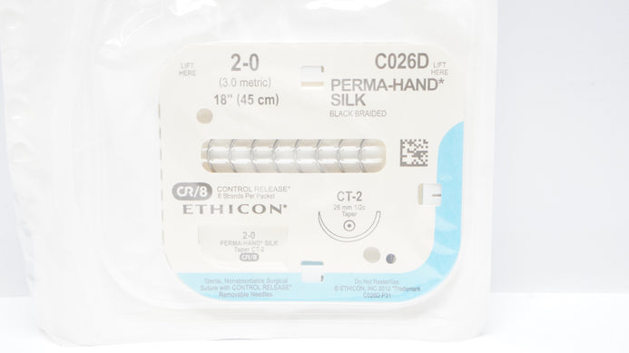 - Ethicon C026D 2-0 PERMA HAND Silk Black 48", CT-2 26mm, 8 stands per packet