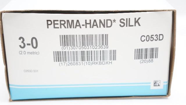 - Ethicon C053D 3-0 PERMA-HAND SILK, RB-1, 17mm 1/2c Taper, 18inch - Box of 11