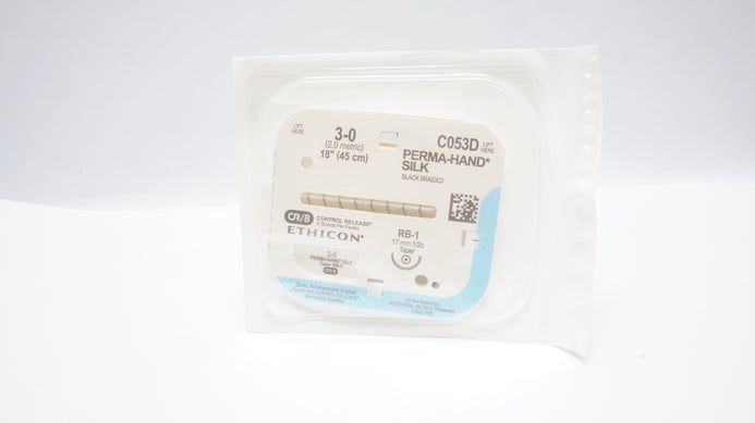 - Ethicon C053D 3-0 PERMA-HAND SILK, RB-1, 17mm 1/2c Taper, 18inch (x)