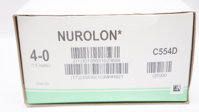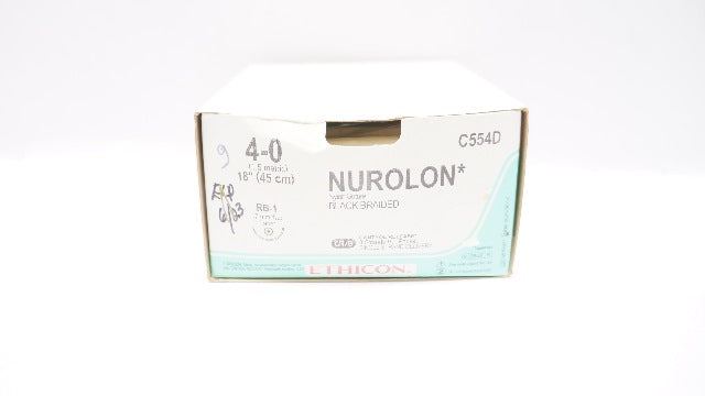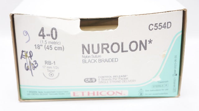 - Ethicon C554D 4-0 Nurolon Nylon, RB-1, 17mm 1/2c Taper, 18inch (x) -Box of 9