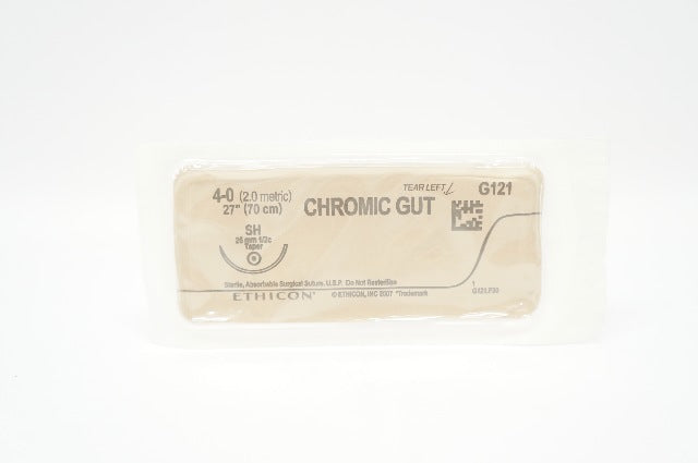 - Ethicon G121 4-0 CHROMIC GUT, SH, 26mm 1/2c Taper, 27inch