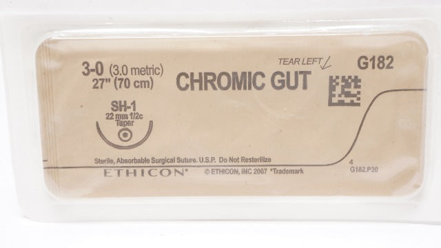 Ethicon G182 3-0 CHROMIC GUT Surgical Suture SH-1, 22mm 1/2c Taper, 27inch