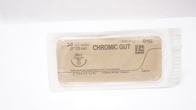 Ethicon G182 3-0 CHROMIC GUT, SH-1, 22mm 1/2c Taper, 27inch