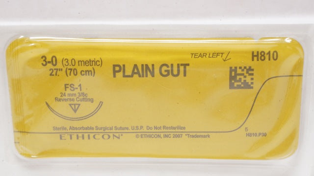 Ethicon H810 3-0 Plain Gut, FS-1, 24mm 3/8c Reverse Cutting, 27inch