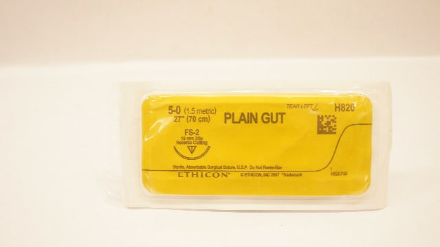 - Ethicon H820 5-0 Plain Gut, FS-2, 19mm 3/8c Reverse Cutting, 27inch (x)