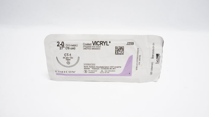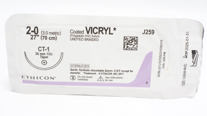 Ethicon J259 2-0 Coated VICRYL Polyglactin 910 Suture Undyed Braided CT-1 36mm 1/2c Taper, 27inch