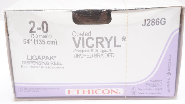 - Ethicon J286G 2-0 Coated VICRYL Undyed Braided Ligapak 54inch - Box of 12