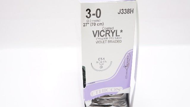 - Ethicon J338H 3-0 VICRYL, CT-1, 36mm 1/2c Taper, 27inch (x) - Box of 23
