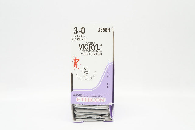 - Ethicon J356H 3-0 Coated VICRYL Stre CT 40mm 1/2c Taper 36inch - Box of 36 (x)