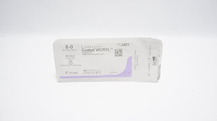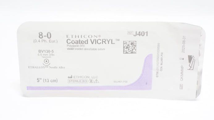 - Ethicon J401 8-0 VICRYL Violet Braided, BV130-5, 6.5mm 3/8c Taper, 5inch (x)