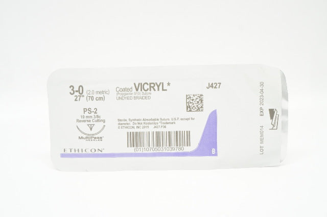 Ethicon J427 3-0 Coated VICRYL PS-2 19mm 3/8c Reverse Cutting 27inch (x)