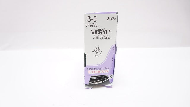 - Ethicon J427H 3-0 Vicryl, PS-2, 19mm 3/8c Reverse Cutting, 27inch (x)-Box of 34