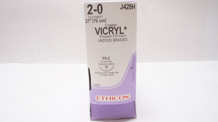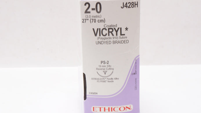 - Ethicon J428H 2-0 VICRYL, PS-2, 19mm 3/8c, 27inch (x) - Box of 36