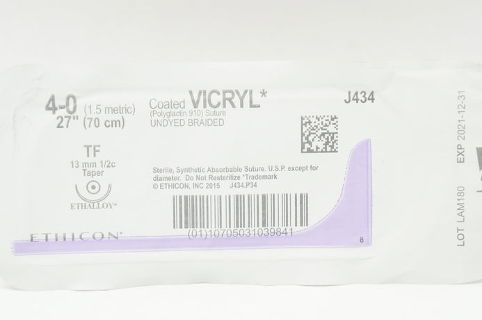 Ethicon J434 4-0 Coated VICRYL TF 13mm 1/2c Taper, 27inch (x)