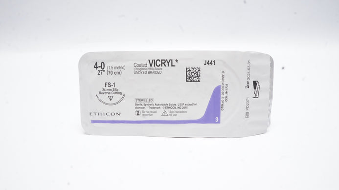 Ethicon J441 4-0 Coated VICRYL Stre FS-1 24mm 3/8c Reverse Cutting, 27inch (x)