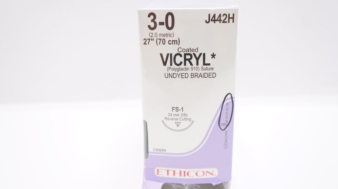 - Ethicon J442H VICRYL 3-0, FS-1, 24mm 3/8c Reverse Cutting, 27inch (x)- Box of 26