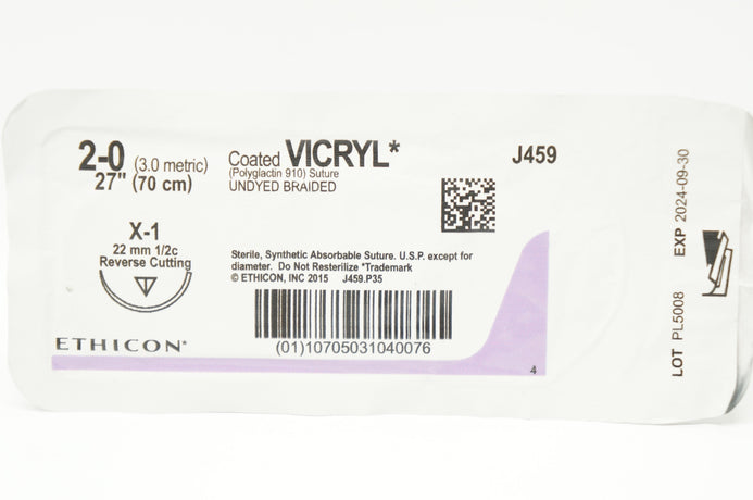 - Ethicon J459 2-0 Coated VICRYL Polyglactin 910 Stre X-1 22mm/1/2c 27in.