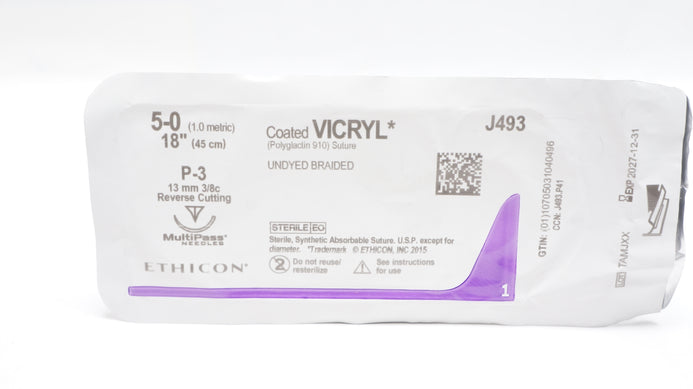 Ethicon J493 5-0 Coated VICRYL Stre P-3 13mm 3/8c Reverse Cutting 18inch