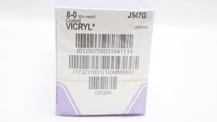 Ethicon J547G 8-0 Coated VICRYL Stre TG140-8 6.5mm 3/8c Spatula 18in-Box of12(X)