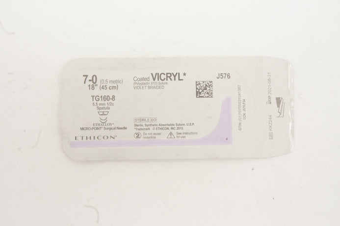- Ethicon J576 7-0 Coated VICRYL TG160-8, 5.5mm 1/2c Spatula, 18inch