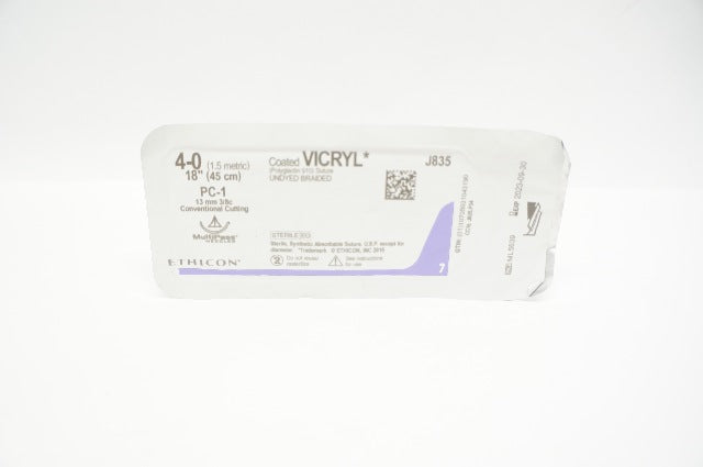 - Ethicon J835 4-0 Coated VICRYL Stre PC-1 13mm 3/8c ConventionalCutting 18inch