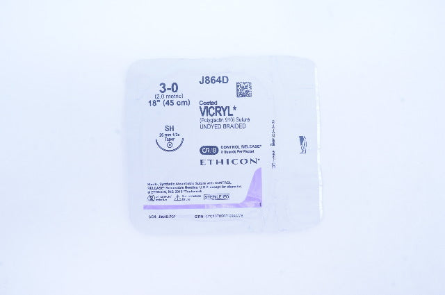 - Ethicon J864D 3-0 Coated VICRYL SH 26mm 1/2c Taper, 18inch