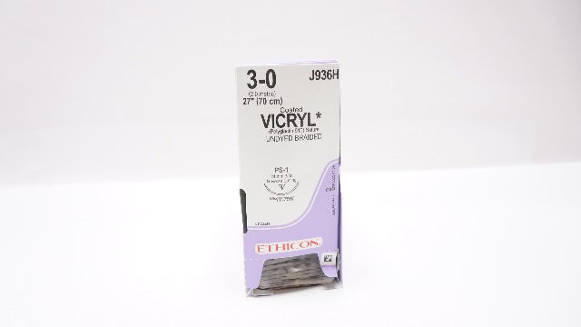 - Ethicon J936H 3-0 VICRYL PS-1 24mm 3/8c Reverse Cutting 27inch (x)-Box of 36 (x)