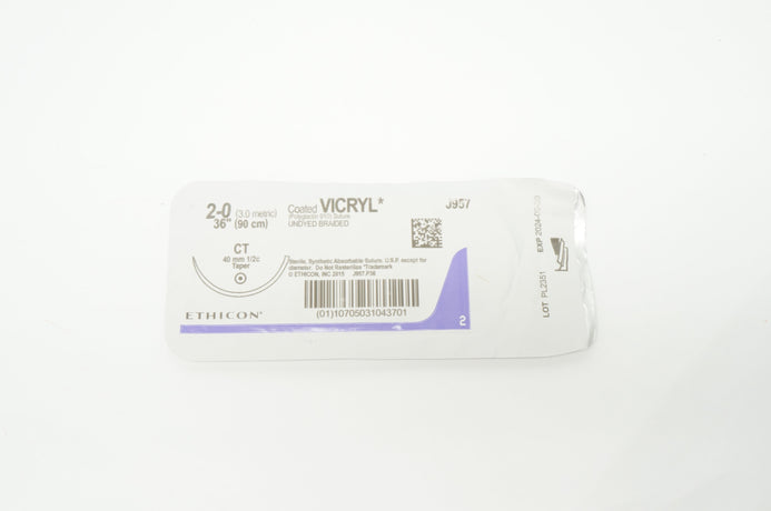 - Ethicon J957 2-0 Coated VICRYL CT 40mm 1/2c Taper 36inch