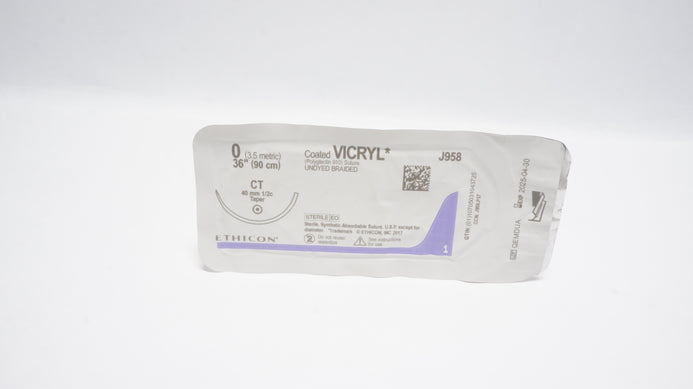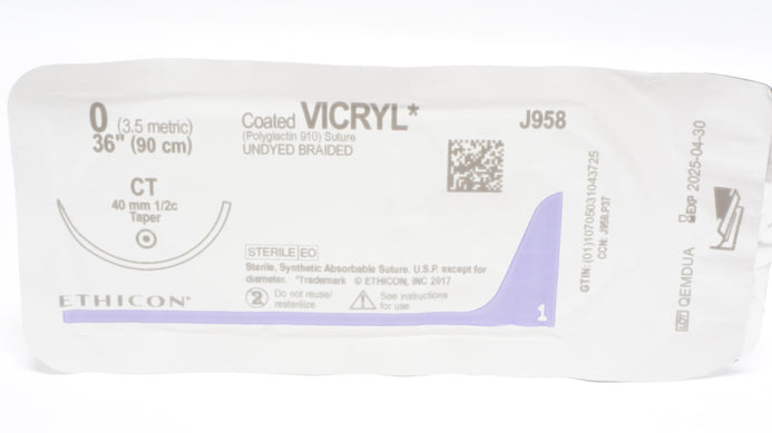 - Ethicon J958 0 Coated VICRYL Polyglactin Stre CT 40mm 1/2c Taper 36 inch (x)