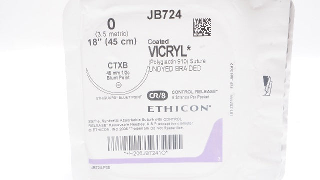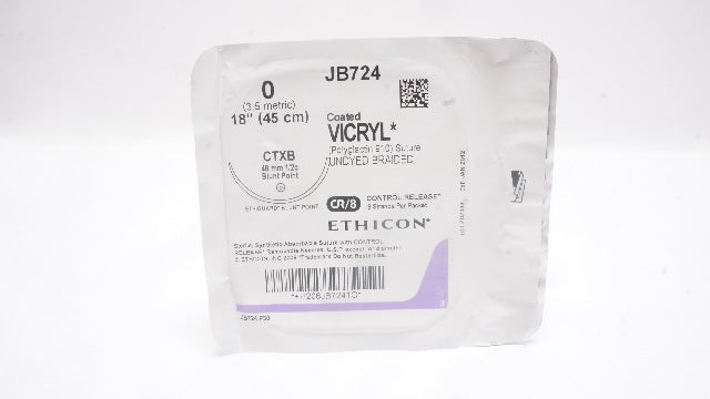 Ethicon JB724 0 Coated VICRYL, CTXB, 48mm 1/2c Blunt Point, 18inch (x)