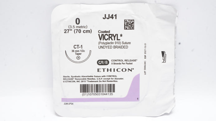 Ethicon JJ41 0 Coated VICRYL Polyglactin 910 Stre CT-1 36mm 1/2c Taper 27inch