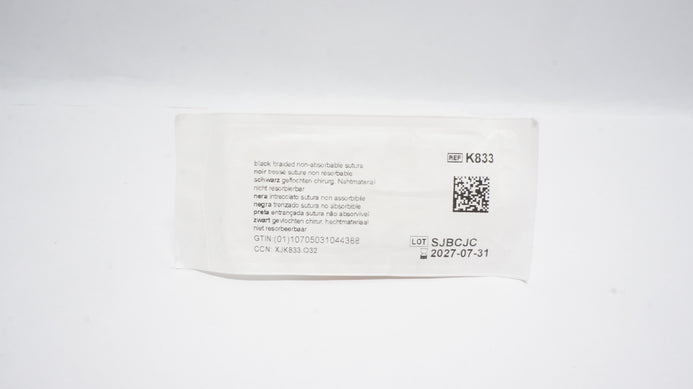 Ethicon K833 2-0 PERMA-HAND SILK Black Braided Suture SH 26mm 1/2c Taperpoint, 30inch