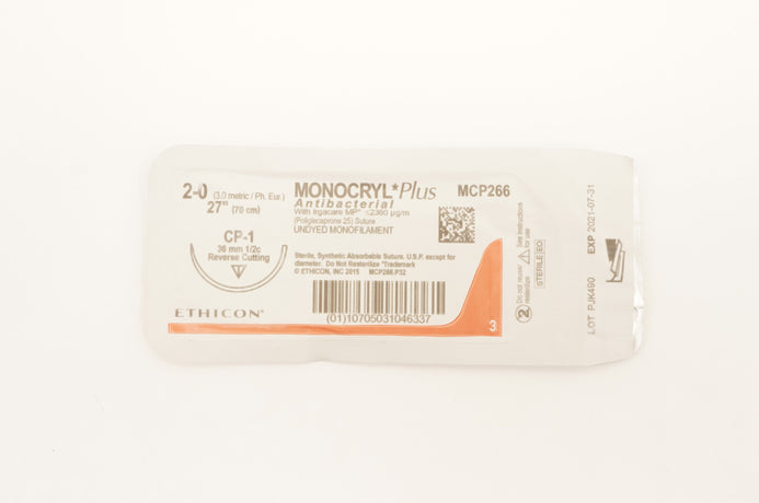 Ethicon MCP266 2-0 Monocryl Plus Stre CP-1 36mm 1/2c 27inch (x)