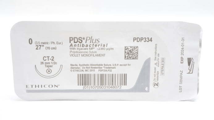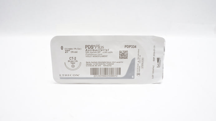 - Ethicon PDP334 0 PDS Plus Violet Monofilament, CT-2 26mm 1/2c Taper, 27inch (x)
