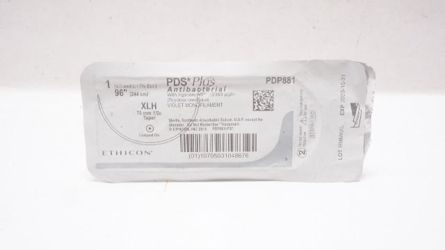 - Ethicon PDP881 PDS Plus Antibacterial w/ Irgacare MP 1 XLH 70mm 1/2c Taper 96in