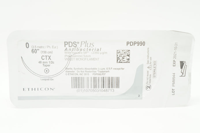 - Ethicon PDP990 0 PDS Antibacterial Monofilament CTX 48mm 1/2c Taper 60in. (x)