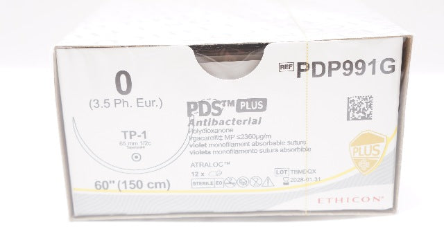 - Ethicon PDP991G PDS 0 Plus, TP-1, 65mm 1/2c Taper, 60inch - Box of 12