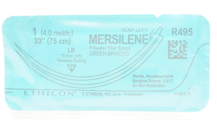 - Ethicon R495 1 Mersilene Polyester Stre LR 75mm 3/8c Reverse Cutting 30 inch(x)